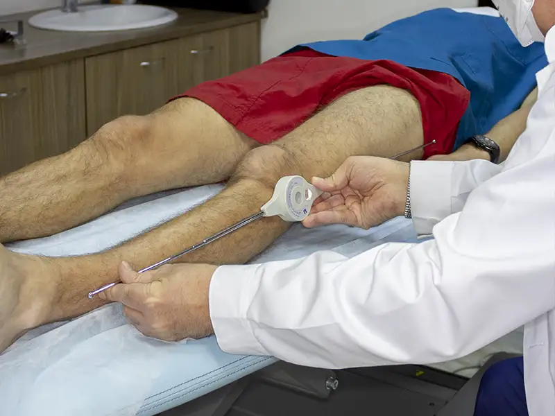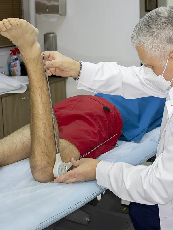 Για την μέτρηση της παθητικής σταθερότητας του γόνατος χρησιμοποιούμε το αρθρόμετρο Rolimeter με το οποίο μετρείται σε χιλιοστά η δοκιμασία Lachmann-Νούλης και η πρόσθια συρταροειδής δοκιμασία (Drawer test).